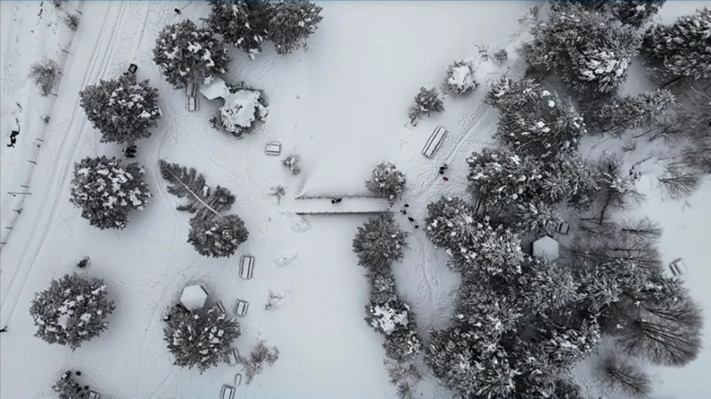 Öte yandan Domaniç Dağları'nın karla kaplı manzarası dronla da görüntülendi.