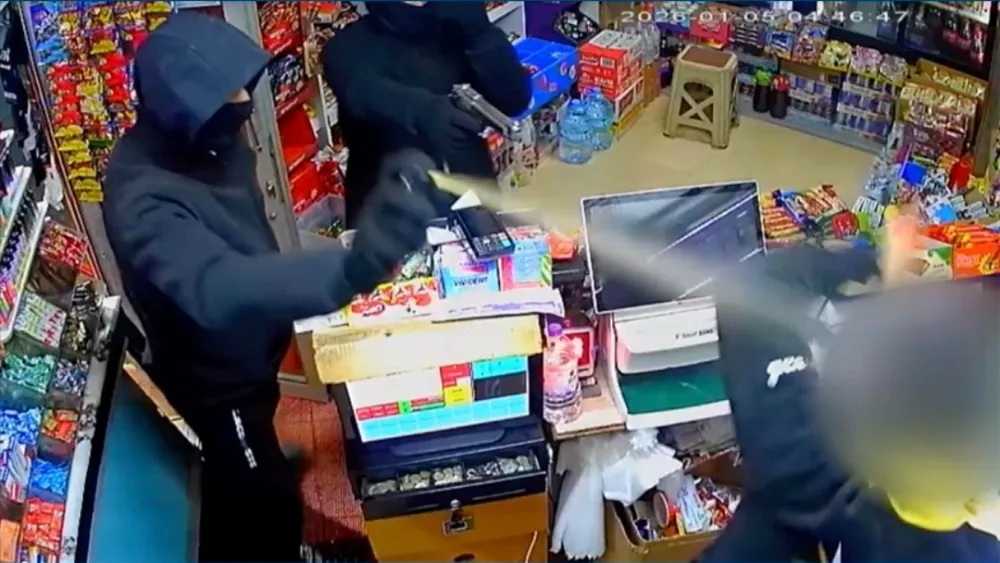 İş yerinin güvenlik kamerasına yansıyan görüntülerde, kar maskeli ve kapüşonlu şüphelilerden birinin S.U'ya biber gazı sıktığı, diğerinin tabanca doğrulttuğu görülüyor. Şüphelilerin sonrasında çalışanı darbetmesi ve yaşanan arbede ile kasadan para alıp kaçtıkları da görüntülerde yer alıyor.