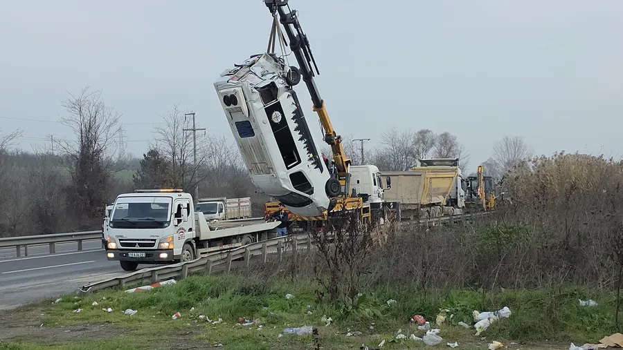 Şarampole yuvarlanan minibüs, vinç yardımıyla bulunduğu yerden çıkarılarak kurtarıcı vasıtasıyla otoparka çekildi. Kaza nedeniyle karayolu kısa süreliğine trafiğe kapatılırken, çalışmaların tamamlanmasının ardından yol yeniden ulaşıma açıldı.