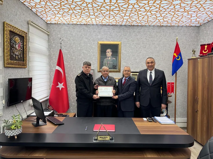 Bursa Jandarma Asayiş Vakfı’na yaptığı bağış dolayısıyla Abdullah Kaptan’a, İl Jandarma Komutanı Tümgeneral İdris Tataroğlu, Jandarma Asayiş Vakfı Genel Müdürü Mehmet Boyraz ile JAV Yatırım ve İştirakler Müdürü Hakan Başkaya tarafından plaket verildi.