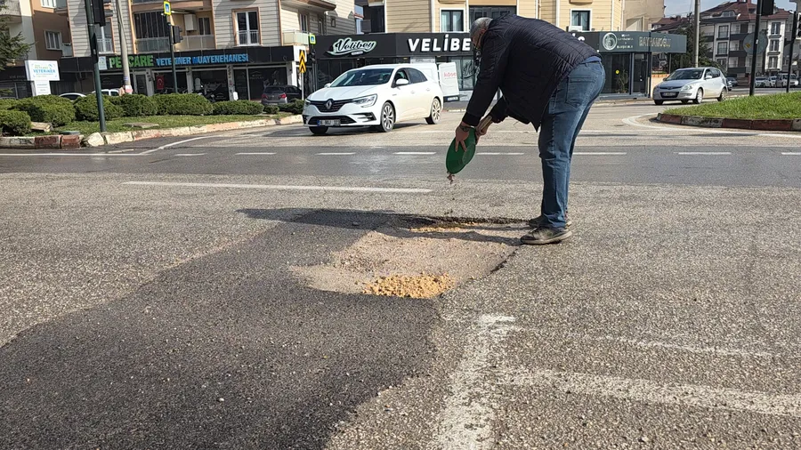 Kapatılmayan çukur, birçok aracın lastiğine ve ön takımına zarar verecek seviyeye ulaşmıştı.