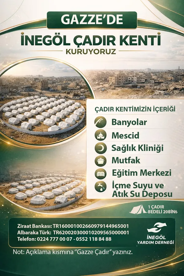 Dernek binasında düzenlenen basın toplantısında konuşan İnegöl Yardım Derneği Başkanı Nida Menteş, ilk proje kapsamında Gazze’de “İnegöl Çadır Kenti” kurmayı hedeflediklerini söyledi. Toplam 1000 çadırdan oluşması planlanan çadır kentte, her biri 25–30 metrekare büyüklüğünde, sıcak, soğuk ve yağmur şartlarına dayanıklı çadırların yer alacağı ifade edildi.