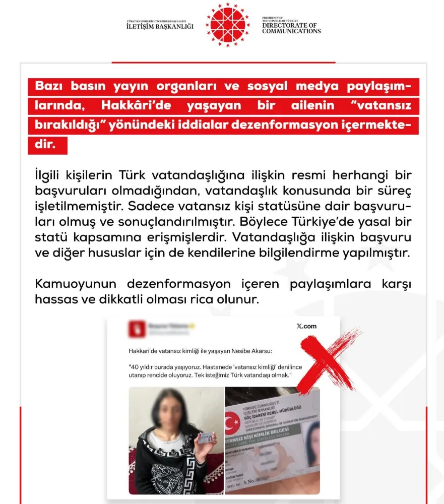 Yetkililer tarafından yapılan açıklamada, söz konusu kişilerin Türk vatandaşlığına ilişkin resmi herhangi bir başvuruda bulunmadıkları, bu nedenle vatandaşlıkla ilgili bir işlem sürecinin başlatılmadığı belirtildi.