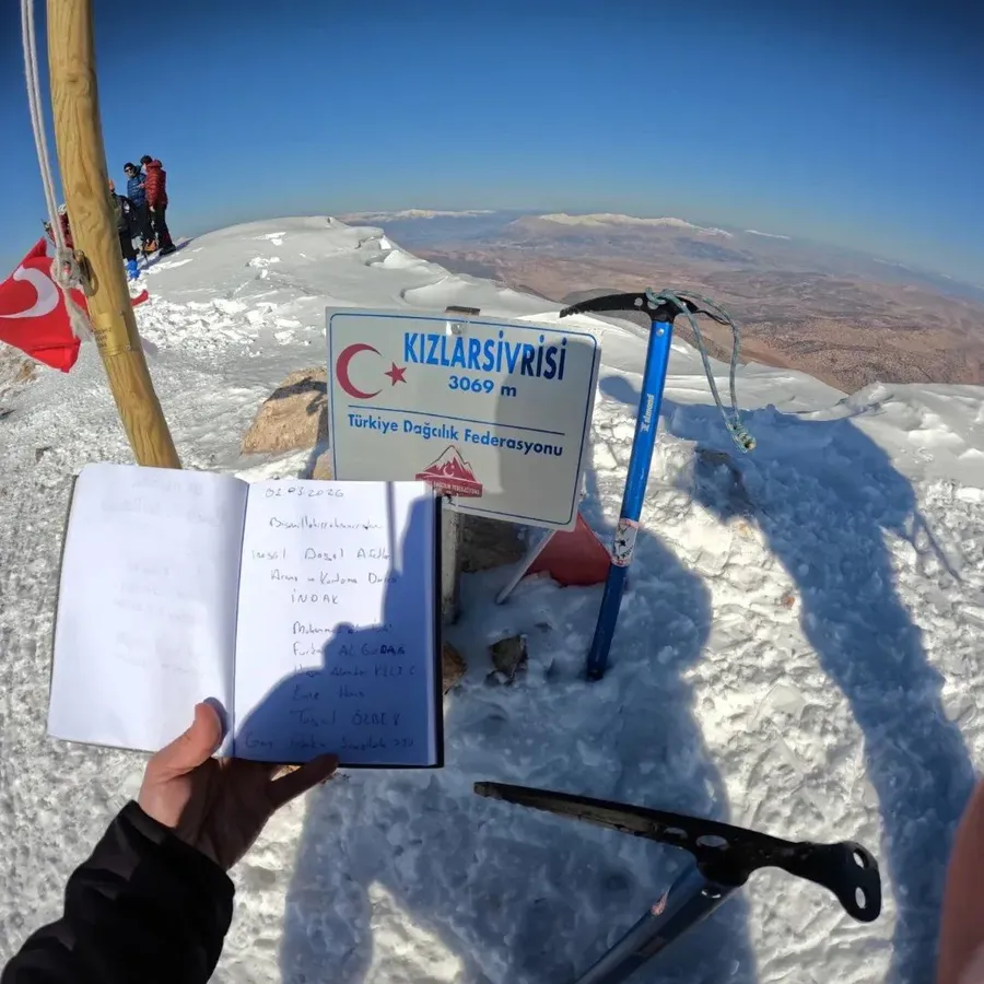 Hava sıcaklığının eksi 10 ila 15 derecelere kadar düştüğü ancak açık havada gerçekleşen faaliyet, sporcuların zirveye güvenli şekilde ulaşmasıyla tamamlandı.