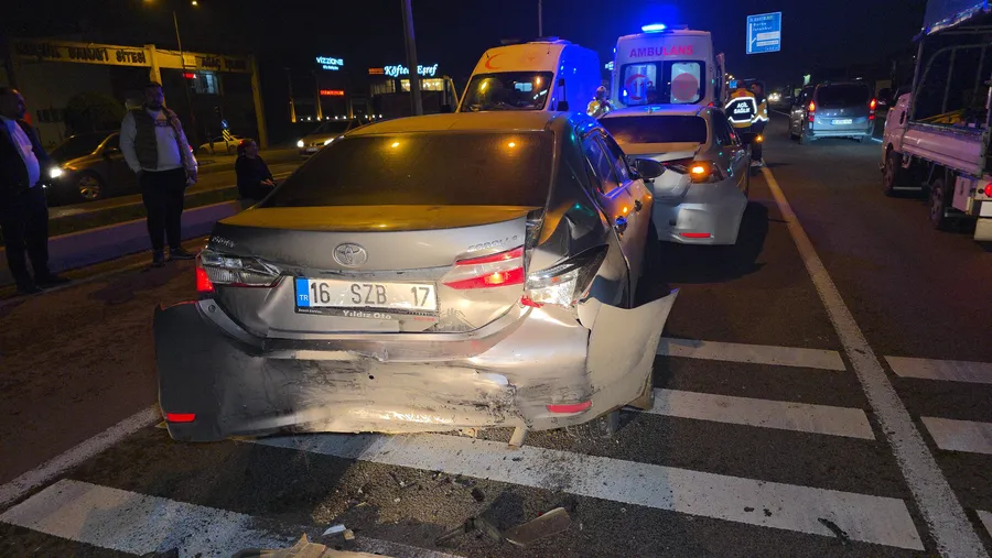 Edinilen bilgilere göre, kaza İnegöl girişindeki Ağaç İşleri Kavşağı’nda meydana geldi. Mevlüt M. (70) yönetimindeki 16 BCL 700 plakalı otomobil, kırmızı ışıkta bekleyen Meral P. (42) idaresindeki 16 SZB 17 plakalı araca arkadan çarptı. Çarpmanın etkisiyle öndeki araç, önünde duran Döndü M. (52) yönetimindeki 16 BKB 485 plakalı otomobile çarparak durabildi.