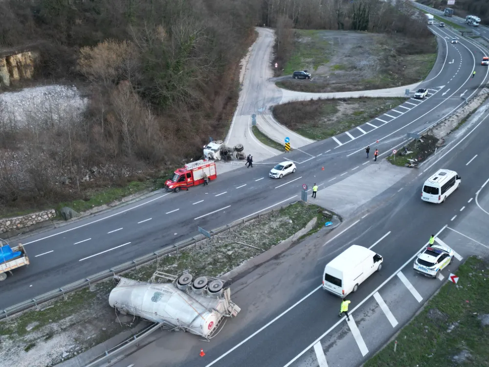 Kaza nedeniyle Bursa-Ankara karayolunda trafik bir süre kontrollü olarak tek şeritten sağlandı. Olayla ilgili inceleme başlatıldı.