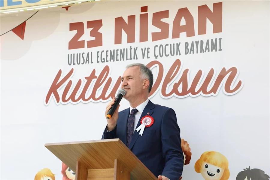 Son olarak bir konuşma yapan Kaymakam Eren Arslan ise “Bundan 104 yıl önce milli mücadele daha neticelenmemişken, Mustafa Kemal Atatürk ve silah arkadaşları Ankara’da egemenliğin kayıtsız şartsız millette olması gerektiğine inanarak Türkiye Büyük Millet Meclisini açıp milli mücadeleyi milletin egemenliğiyle taçlandırmıştır. Bu güzel zaferi ve bayramı da dünyada çocuklarına bayram olarak hediye eden tek ülke olarak yüce Atatürk, çocuklara emanet etmiştir” dedi.