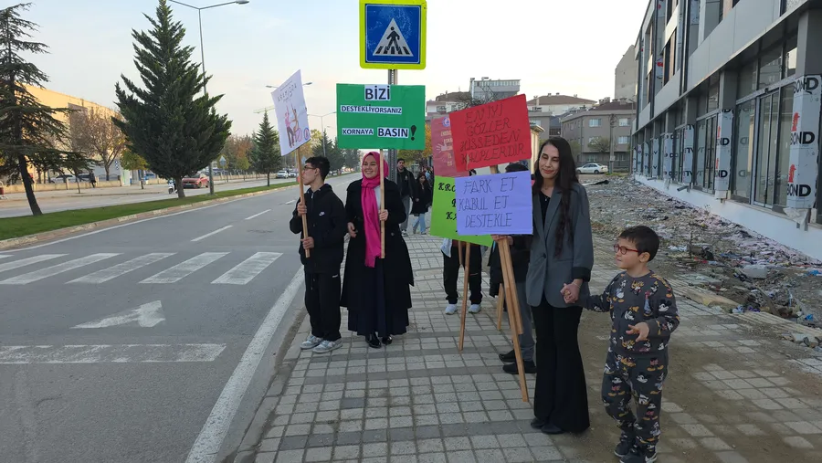 Sinanbey Mahallesi Mimar Sinan Caddesi üzerinde gerçekleştirilen etkinlikte, öğrenciler ve merkez çalışanları hazırladıkları dövizlerle vatandaşlara mesaj verdi. “Bizi destekliyorsan korna çal”, “Kromozomlar farklı, kalpler aynı”, “Kusur fizikte değil beyindedir”, “Fark et, kabul et, destek ol” gibi ifadelerin yer aldığı pankartlar dikkat çekti.