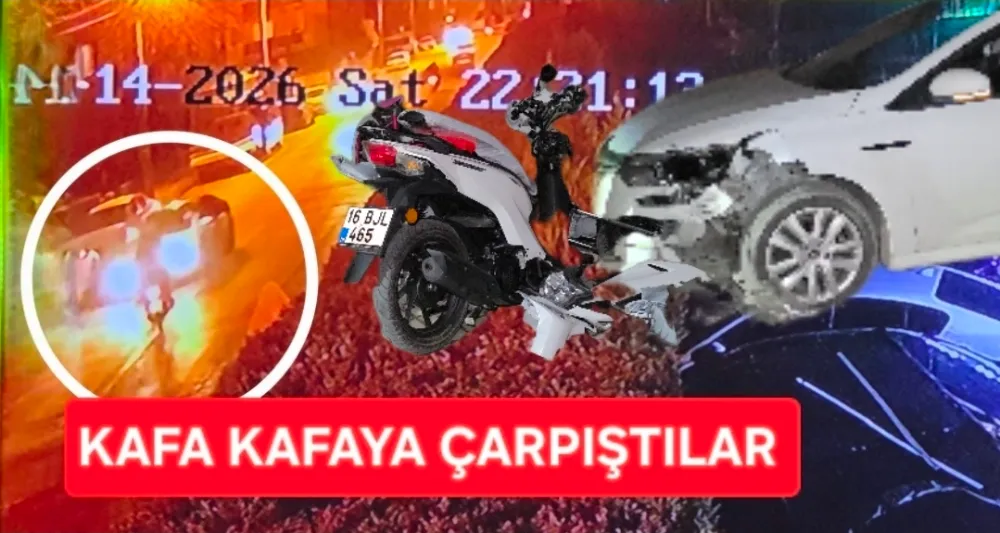 Kaza saat 22.45 sıralarında Akgül Sokak üzerinde meydana geldi. Edinilen bilgilere göre, Yusuf O. (16) yönetimindeki 16 BJL 465 plakalı motosiklet, karşı yönden gelen Mustafa K. idaresindeki 43 ACU 783 plakalı otomobil ile kafa kafaya çarpıştı. Çarpışmanın etkisiyle motosiklet sürücüsü Yusuf O. ile arkasında yolcu olarak bulunan Ege A. (15) yaralandı.