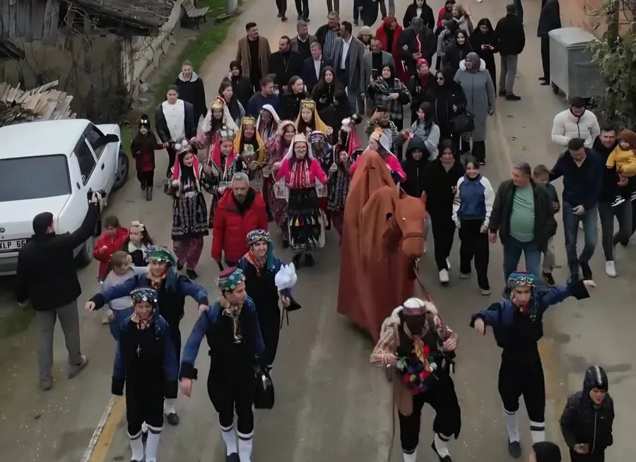 Bursa'nın İnegöl ilçesi Gündüzlü Mahallesi’nde düzenlenen etkinlikte, temsili deve ile yüzü siyah boya ile boyanan deveci, devenin yularından tutarak mahalle sokaklarında dolaştı. Devenin arkasından ilerleyen halk oyunları ve folklor ekipleri, oynadıkları oyunlar eşliğinde kapı kapı gezerek vatandaşlarla şakalaştı.