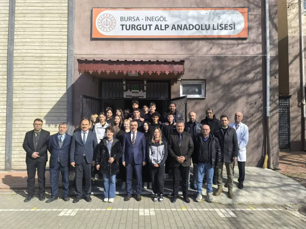 İnegöl İlçe Millî Eğitim Müdürü Halil İbrahim Zengin, İnegöl Kaymakamı Eren Arslan ile birlikte Turgut Alp Anadolu Lisesi’ni ziyaret ederek öğretmen ve öğrencilerle bir araya geldi.