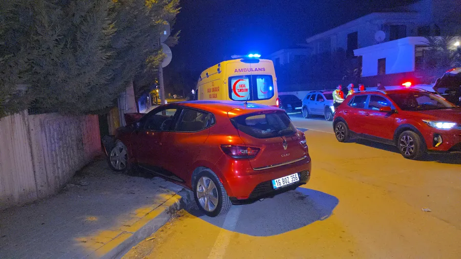 Edinilen bilgilere göre; Ahmet Türkel Çevre Yolu üzerinden Hazine Sokak girişine dönüş yapmak isteyen Tuğba Ç. idaresindeki 16 BOZ 356 plakalı otomobil, sokak girişine süratli girince kontrolünü kaybederek önce elektrik direğine ardından site duvarına çarptı.