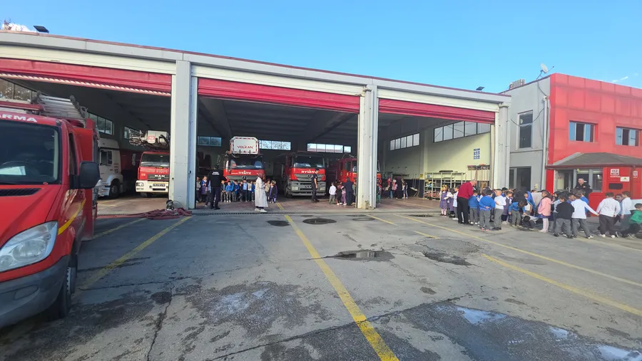 Öğrenciler, itfaiye araçlarını yakından inceleme fırsatı bulurken itfaiyeciler tarafından ekipmanların kullanım şekli uygulamalı olarak gösterildi. Minikler, merak ettikleri soruları sorarak meslekle ilgili detayları öğrenirken keyifli anlar yaşadı.