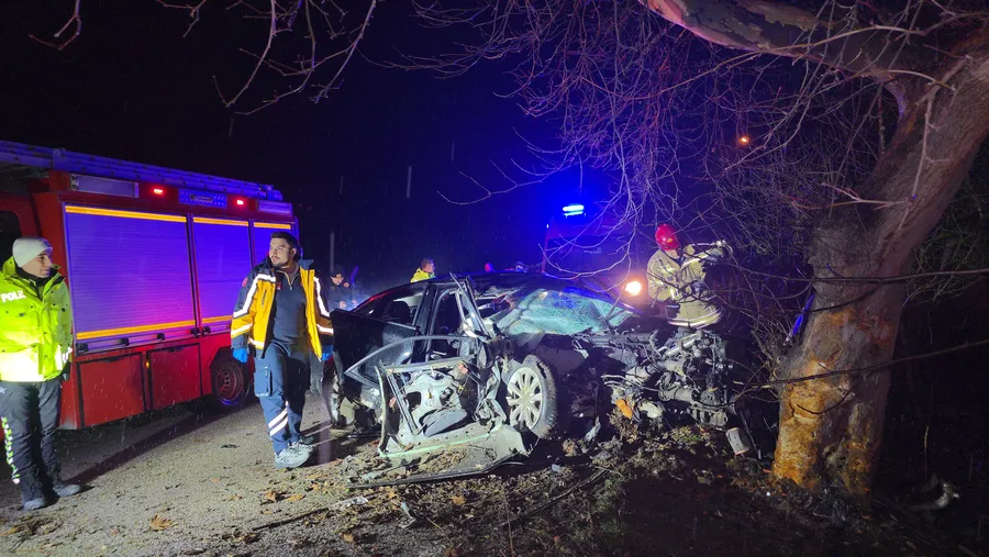 Çarpmanın etkisiyle savrulan otomobilde bulunan 4 kişiden 2’si olay yerinde hayatını kaybetti.