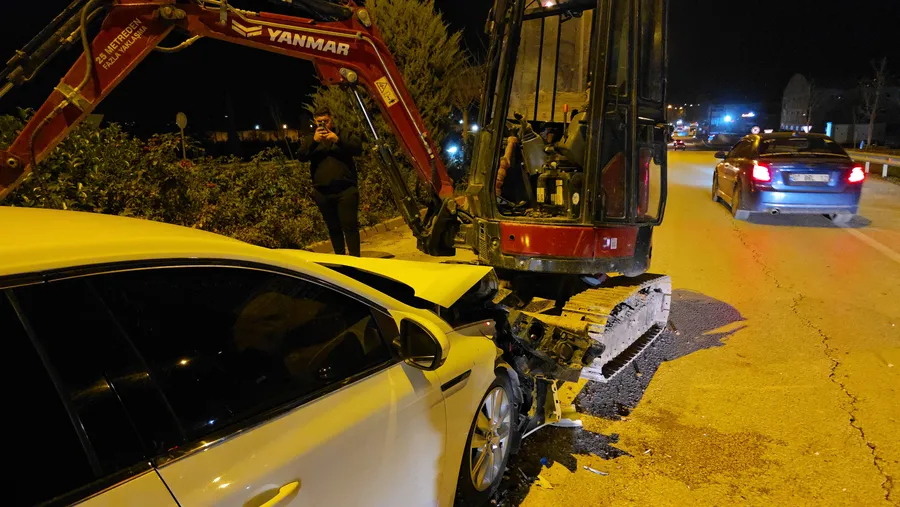 Edinilen bilgilere göre, çalışma alanında bulunan ekskavatörü kullanan operatör Erdem K. (22), 16Y 6696 plakalı otomobilin iş makinesine çarpmasıyla başından darbe aldı.