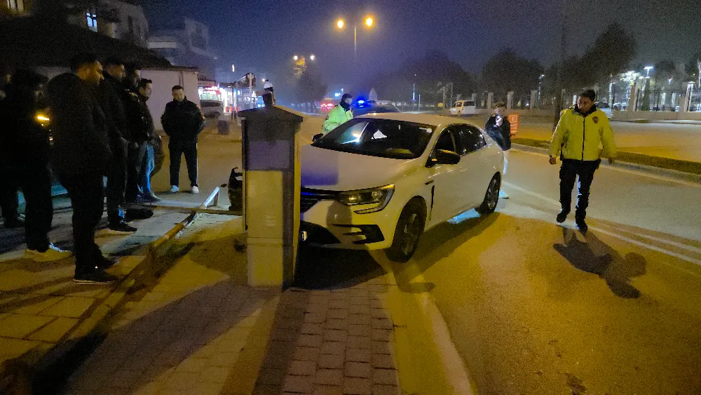 Direksiyon hâkimiyetini kaybeden sürücü, yol kenarında bulunan tabelaya ve ardından elektrik trafosuna çarptı.