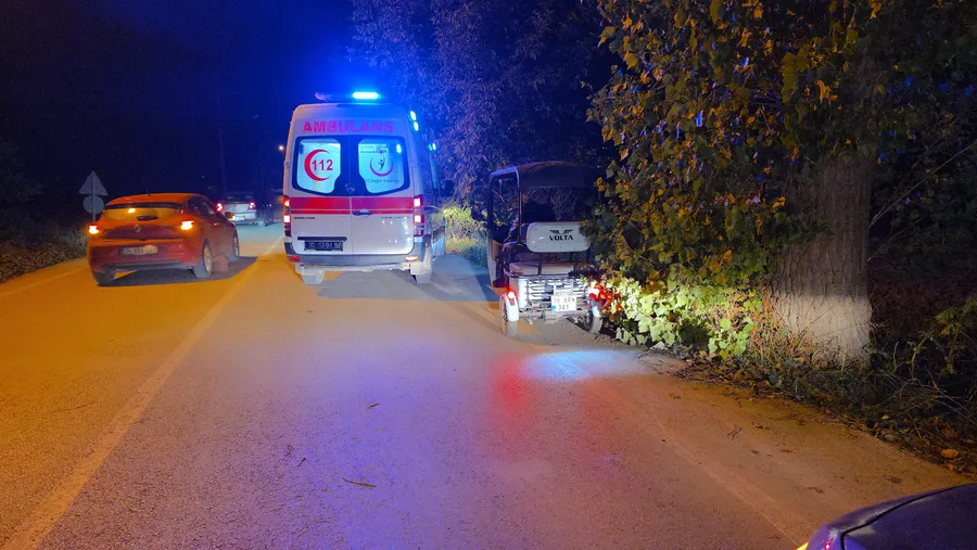 Edinilen bilgilere göre, Selma T. (51) yönetimindeki 16 BRN 341 plakalı elektrikli triportör, sürücüsünün direksiyon hâkimiyetini kaybetmesi sonucu yoldan çıkarak devrildi. Kazada sürücü Selma T. (51) ile yolcu konumunda bulunan Nebahat İ. (63) yaralandı.