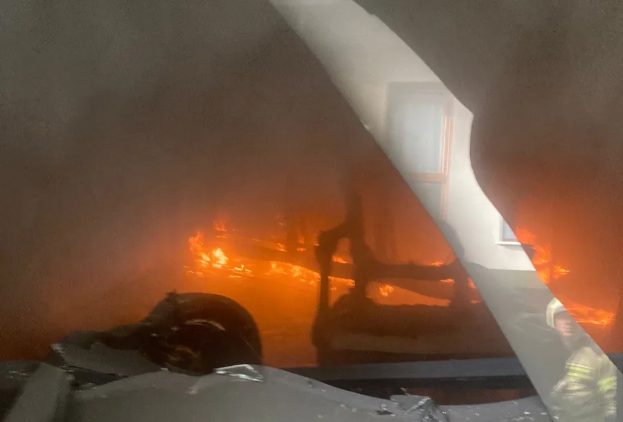 koltukları sararken, içerideki cins kedi yoğun dumandan etkilendi.