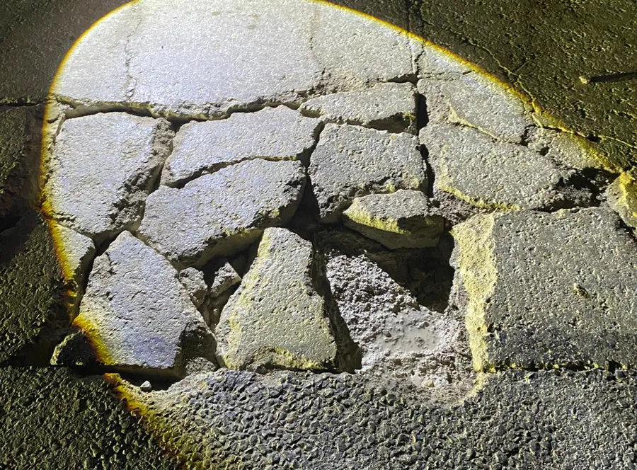 Olay yerinde çekilen fotoğraflarda, asfaltın parçalanarak çöktüğü, çukurun araç lastiğini parçaladığı ve darbenin etkisiyle hava yastıklarının devreye girdiği görüldü.