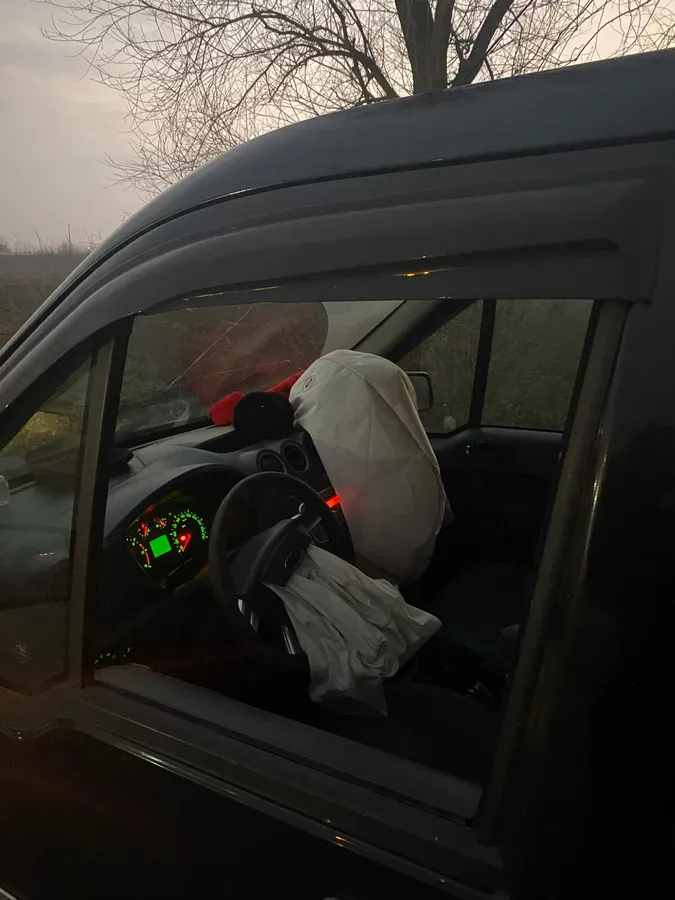 Yaklaşık 50 kilometre hızla seyir halinde olan bir aracın, yoldaki derin çukura düşmesi sonucu aracın lastiği yarıldı, tüm hava yastıkları açıldı.