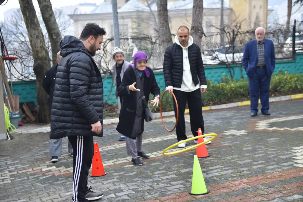 Huzurevi sakinleriyle sohbet eden ve çeşitli oyunlar oynayan sporcular, keyifli anlar yaşanmasına katkı sağladı.