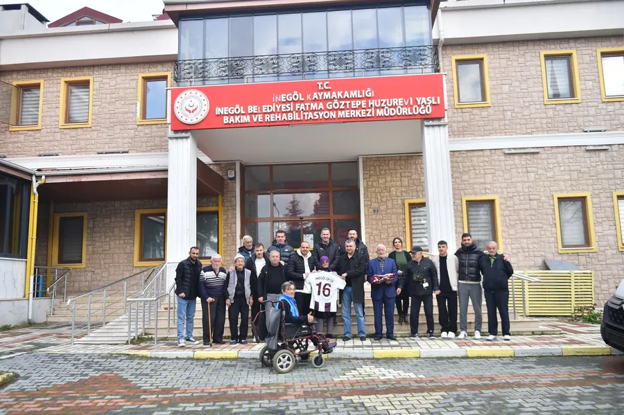 Sultan Su İnegölspor Teknik Direktörü İsmail Güldüren, Yardımcı Antrenör Caner Taban, takım kaptanları Orhan Aktaş ve Bekir Sevgi ile futbolcular Yusuf Tursun, Enes Yılmaz ve Ruhan Arda Aksoy, İnegöl Belediyesi Fatma Göztepe Huzurevi Yaşlı Bakım ve Rehabilitasyon Merkezi’ni ziyaret etti.