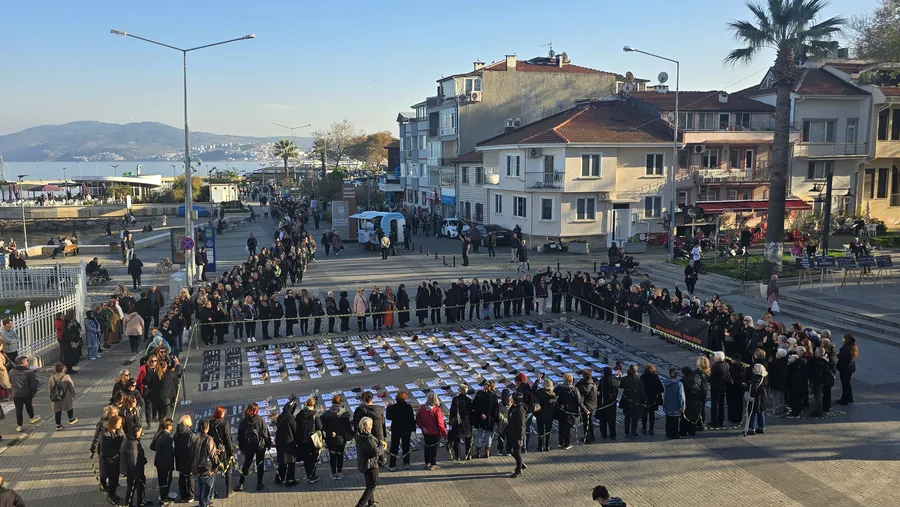 Gece saatlerine kadar süren etkinlikte kadınlar, öldürülen kadınları simgeleyen ayakkabılar ve isimlerinin yazılı olduğu alanda sessiz bir nöbet tuttu.