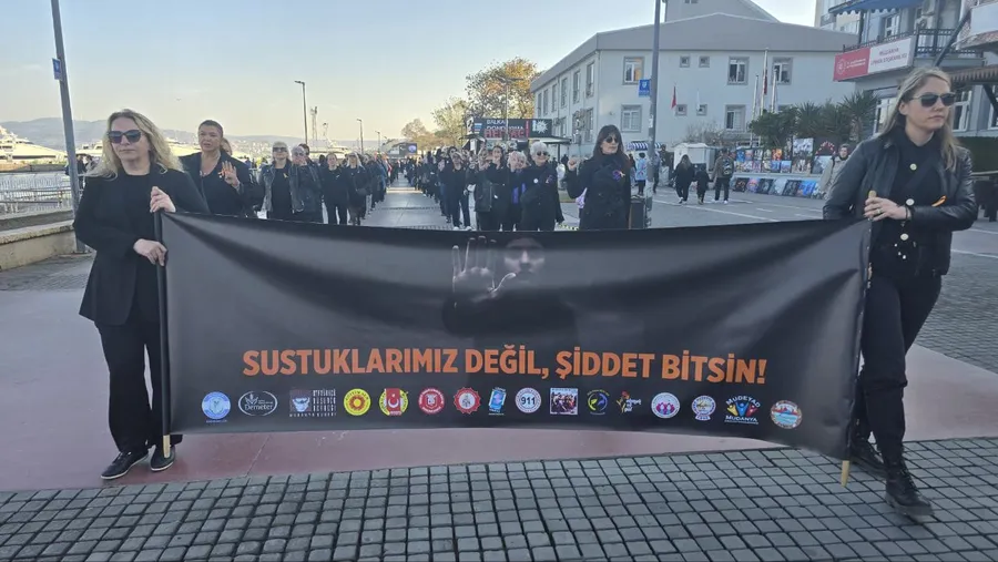 Siyah kıyafetleriyle alanda toplanan kadınlar, emniyet şeridini ikişerli sıra halinde tutarak Mütareke Meydanı’na doğru sessiz bir yürüyüş yaptı. Yürüyüş boyunca, şiddete maruz kalan kadınların yardım çağrısını simgeleyen dört parmak işareti sık sık tekrarlandı.