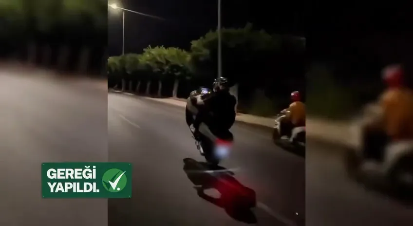 Açıklamada ayrıca, Antalya’nın Alanya ilçesinde motosikletin ön tekerini kaldırarak trafikte tehlike oluşturan sürücü Ö.E.’nin yakalandığı, 2918 sayılı Karayolları Trafik Kanunu uyarınca idari para cezası uygulandığı ifade edildi.