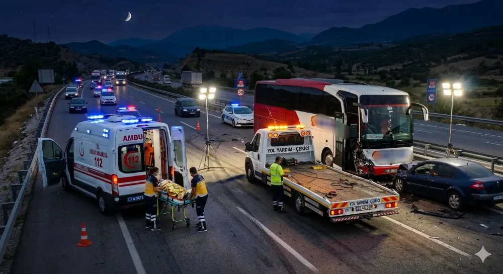 Kaza, Anadolu Otoyolu’nun Ankara istikametinde Gümele Mahallesi mevkisinde meydana geldi. M.A. idaresindeki 78 EFE 092 plakalı yolcu otobüsü, aynı yönde ilerleyen M.O. yönetimindeki 63 ZH 858 plakalı çekiciyle çarpıştı.