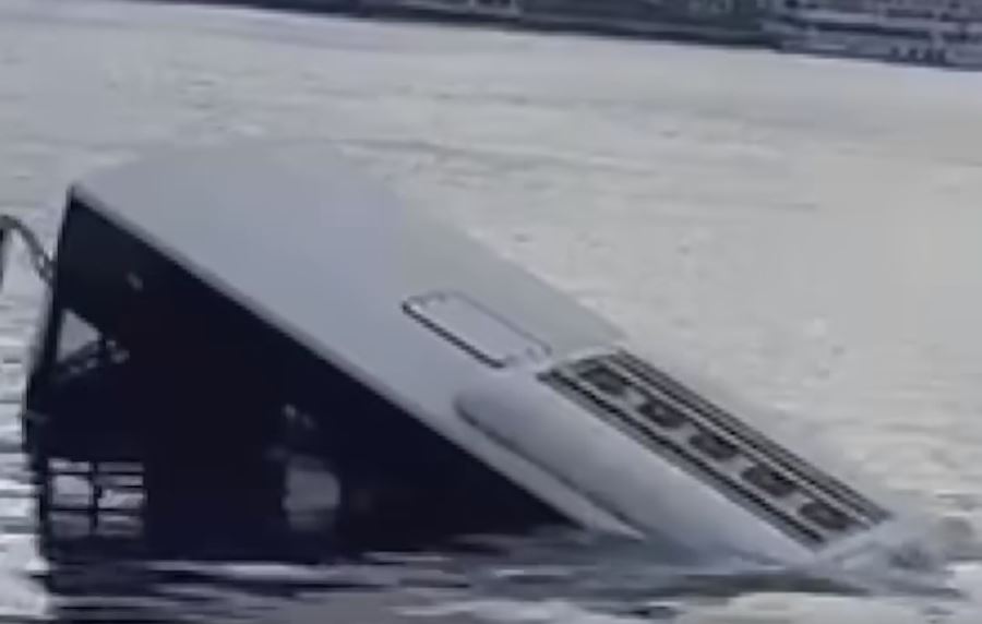 Öte yandan otobüsün suya battığı anlar bir vatandaşın cep telefonu kamerasınca kaydedildi.