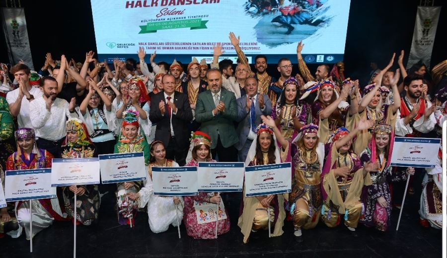 Bursa Müzik Akademisi, Uludağ Mehter, Master’s Kılıç Kalkan, Anadolu’nun Renkleri, Rumeliler Halk Dansları Gençlik Spor Derneği, İnegöl BAL-GÖÇ Derneği, İnegöl Belediyesi ve Namık Kemal Halk Oyunları Derneği (NAKEM) ekipleri gösterileriyle izleyenleri büyüledi. Türkiye’nin tüm yörelerine ait oyunlarının sergilendiği şölenin kapanış konuşmasını yapan Bursa Büyükşehir Belediye Başkanı Alinur Aktaş, gelişen iletişim imkanları çerçevesinde küçülen dünyamızda sanayileşme ile birlikte arka planlara itilen geleneksel kültürel değerlerin gelecek nesillere ulaştırılması amacıyla yaptıkları çalışmalara halk dansları şöleni ile bir yenisini daha eklediklerini söyledi. Pandemi dolayısıyla sıkıntı çeken yerel kültür ve sanat topluluklarına verdikleri desteklerle nefes olmaya çalıştıklarını ifade eden Aktaş, halk danslarının da bu etkinlikle çağdaş normlarla bilimsellik çerçevesinde yeniden gündeme geleceğini ve gelecek nesillere iz bırakacak kaynak arşiv oluşturduğunun altını çizdi.