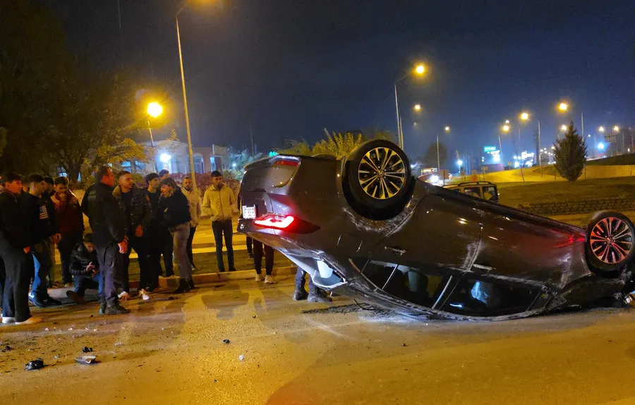 Kazada, takla atan araçta yolcu olarak bulunan Serdar Akif T. (20) yaralandı. Kazanın güvenlik kamerası görüntüleri de çarpışma ve takla anını net şekilde ortaya koydu.