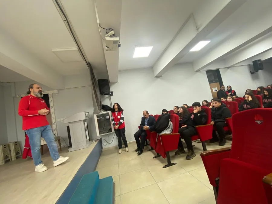 Okul Müdürü Talip Yediyıldız ve Müdür Yardımcısı Caner Özer’in destekleriyle gerçekleştirilen etkinlik kapsamında, İnegöl Kızılay Başkanı Alay Ergin ile gönüllü olarak görev yapan Kızılay çalışanları okula davet edildi.
