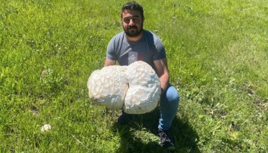 Sivas’ın Doğanşar ilçesinde kayayı andıran yaklaşık 13 kiloluk dev mantar görenleri hayrete düşürdü.