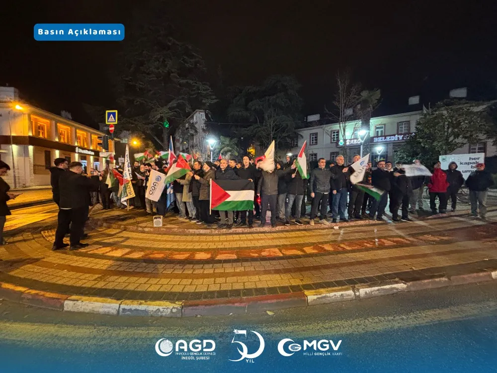 İnegöl'de düzenlenen bir basın açıklamasında, AGD (Anadolu Gençlik Derneği) İnegöl Yönetim Kurulu Üyesi Yakup Tokgöz, Gazze'ye yönelik İsrail'in uyguladığı soykırımın arttığına dikkat çekti ve tüm İslam ülkelerine Gazze'ye askeri ve mali destek çağrısında bulundu. Tokgöz, açıklamasında Gazze halkının yanında olduklarını belirterek, Türkiye'nin bu konuda daha aktif adımlar atması gerektiğini vurguladı.