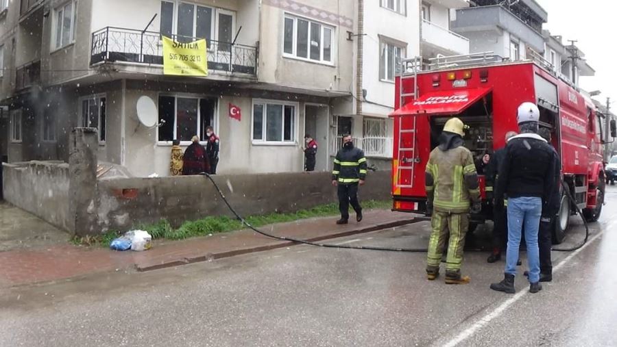 Evde bulunan anne S.A ile 3 çocuğu kendilerini güçlükle dışarıya attı. İtfaiye Ekipleri yangına müdahale ederek kısa sürede yangını söndürdü.